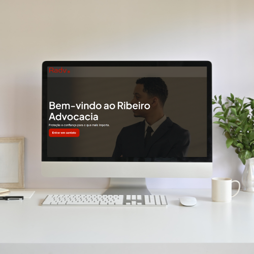 Site institucional para o escritório de advocacia Ribeiro Advocacia, que apresenta as áreas de atuação, depoimentos de clientes, perguntas frequentes e informações de contato.
